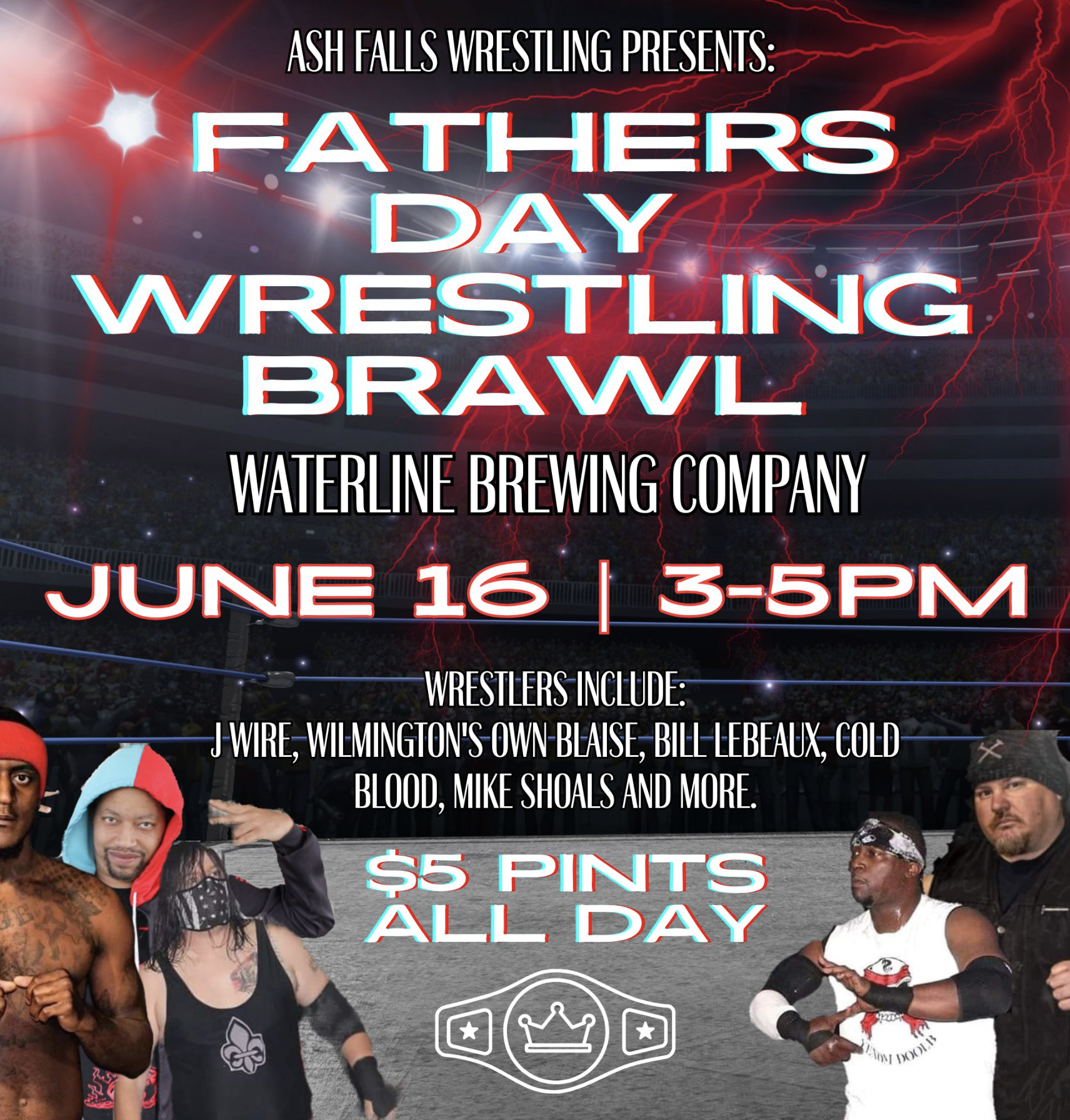 We are throwing a family friendly wrestling match, doing $5 pints all day, and will have Soulful Twist food truck out here serving southern home cooked food. Don't miss this epic father’s day celebration with Wilmington's finest and yours truly.