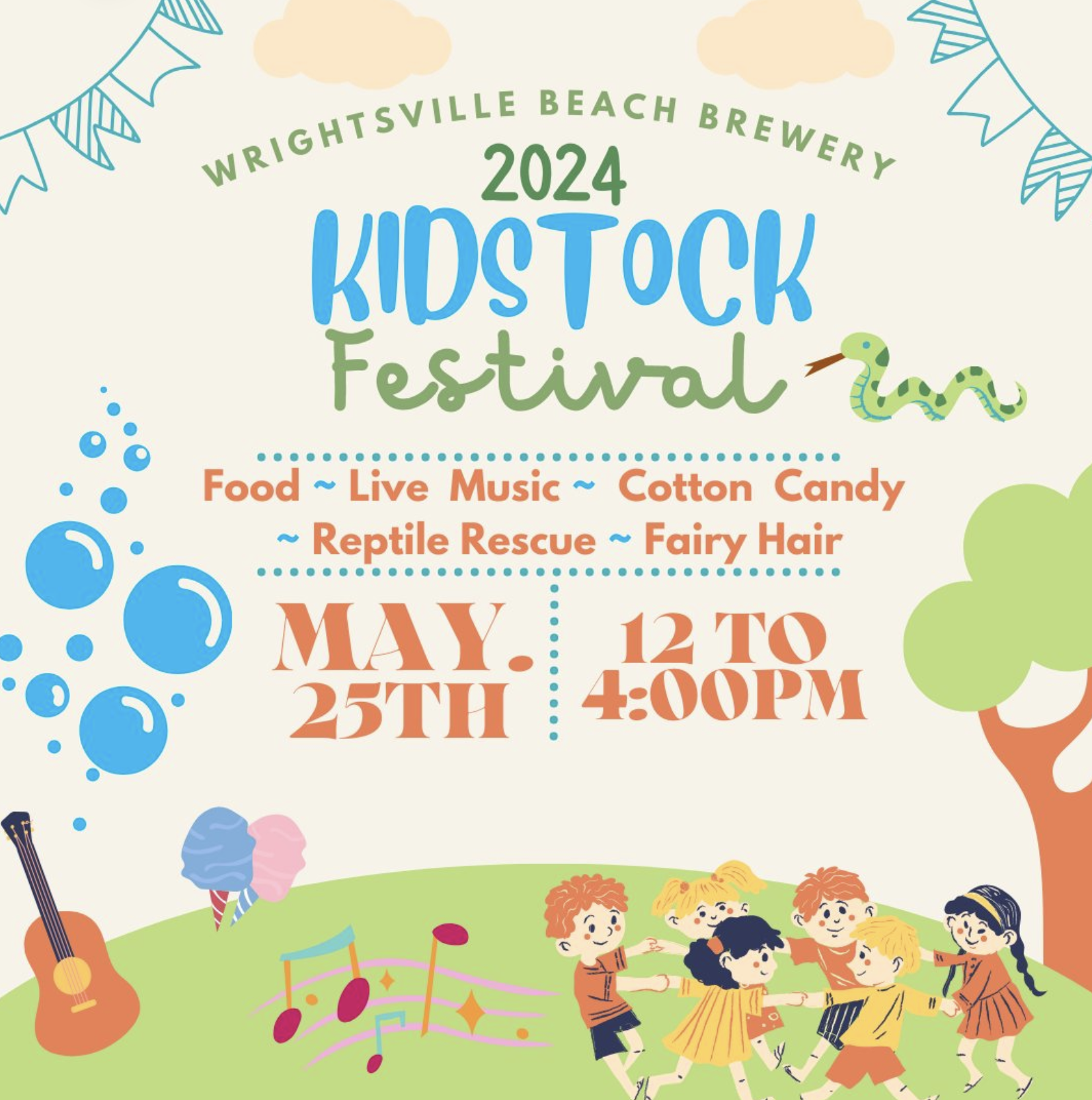 Join us for our annual Kidstock festival! An event for the whole family! Featuring live music with RetroMic 12-2pm & Delia Stanley from 2-4pm. We will also have fairy hair, food, & Fresh Start Reptile Rescue will be here!