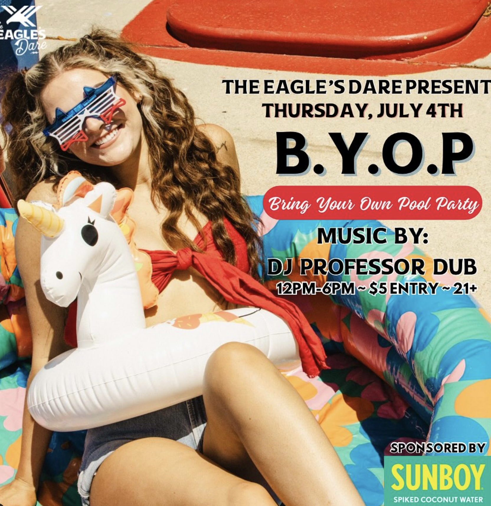 What a better way to celebrate Independence Day other than a parking lot pool party! Thatโs right... Bring Your Own Pool! Kiddy pools, blow up pools, fill up your truck bed for all we care. Throw on your bathing suits, grab your friends, & weโll provide the rest ! ๐๐๐ป