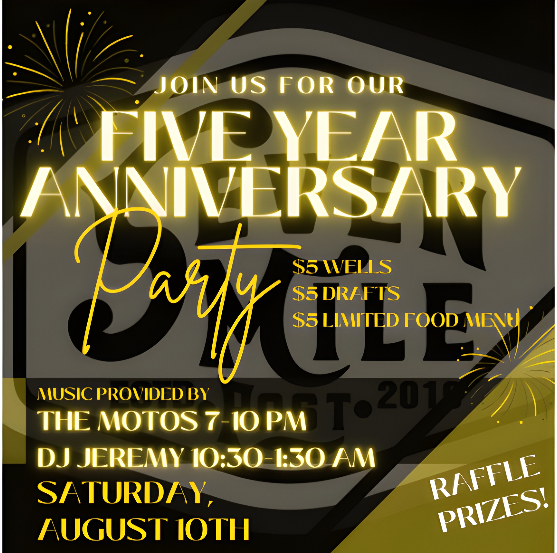 Join us on Saturday, August 10th for our Five Year Anniversary Party! Thank you for the support throughout the years and being a part of our big, wacky family! 💛 We appreciate each and every one of you! 💛 Cheers to the many years to come✨ 🍻🥂✨