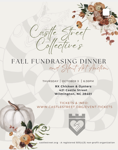 Join your neighbors and friends to raise funds for Castle Street Collective's beautification projects and events, all while enjoying a wonderful three course meal with wine or non-alcoholic option. Rx's bar will be open to buy drinks before, after, and/or not included with dinner.