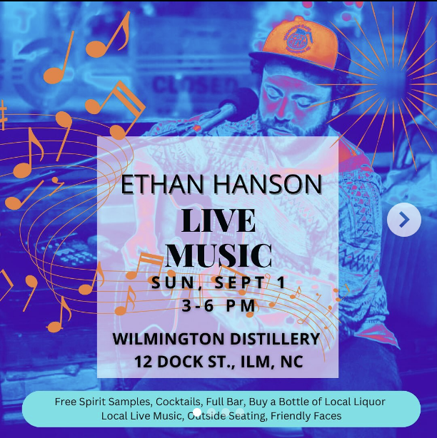 Looking for Local Live Music on Sunday afternoon? Come on by and have a tasty beverage and enjoy Ethan Hanson live at Wilmington Distillery!!!