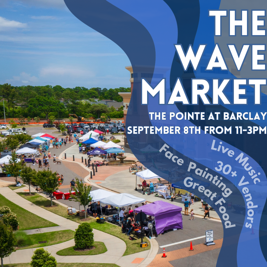 Join us on Sunday, September 8 at The Pointe at Barclay and enjoy the creations of 30+ talented local makers and vendors from 11:00 a.m. - 3:00 p.m. at The Wave Market! π A big THANK YOU to The Pointe 14 - Stone Theatres for all they do to bring The Pointe at Barclay these awesome events! Enjoy live music and shop from an awesome array of local vendors! Located at the heart of Wilmington, The Pointe at Barclay is surrounded by an abundance of family-friendly activities. Come and savor the delights of The Pointe at Barclay's AMAZING restaurants: Bagels on Pointe, Brunches at The Pointe, Far From France Bakery and Bistro, Kilwins, Nori Asian Fusion and Sushi Bar, Oklahoma's Original Burger, On Pointe Power Bowls, Starbucks, Tap Tea Bar, Spindle's Filling Station, Which Wich, and ZΓ³calo Street Food & Tequila ... Then, treat the family to an awesome movie at The Pointe 14 - Stone Theatres! Mark your calendars for the next Wave Markets at The Pointe at Barclay, too, on October 6 and November 3. We hope to see you there! If youβd like to apply to be a vendor at a future Wave Market at The Pointe at Barclay, please visit https://www.thewavemarketilm.com/.