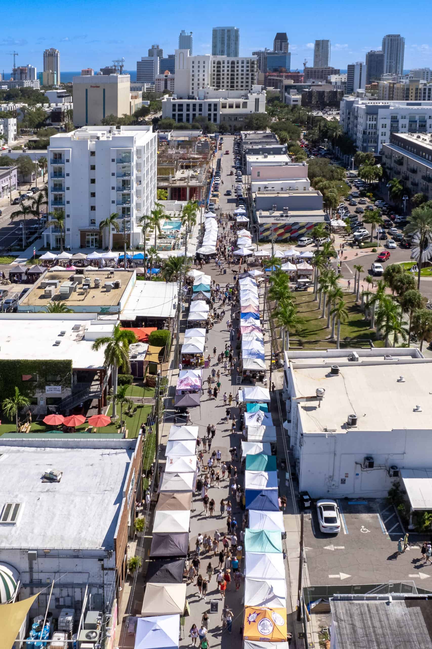 Mezzo Market is an outdoor street market hosted on Baum Avenue between Intermezzo Coffee and Green Bench Brewing in Downtown St Pete. We host 140+ small business vendors selling vintage goods, handmade wares, artwork, boutique clothing, plants, jewelry, food, drinks, and more! And we have a live DJ! The vibe is always amazing at Mezzo Market and we have an incredible community of small business vendors and local patrons to thank for that!