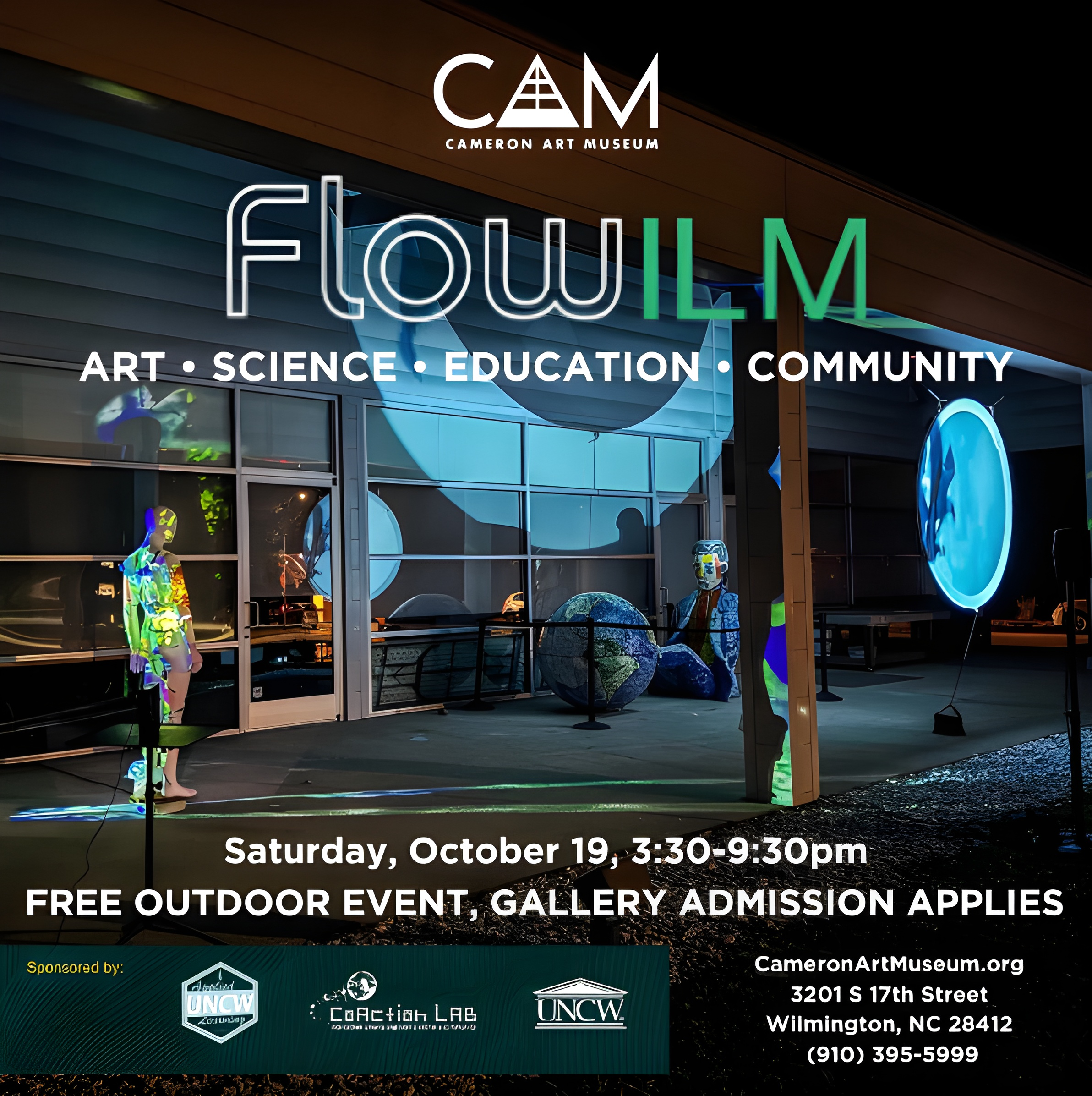 ✨ Join us for the 4th annual #FlowILM THIS SATURDAY, October 19! This free outdoor event brings together art and science to explore global and local water issues with live performances, interactive installations, experimental music, and more. Plus, don’t miss the Dislocated/Dislocada film screening featuring climate-change-inspired works from around the globe