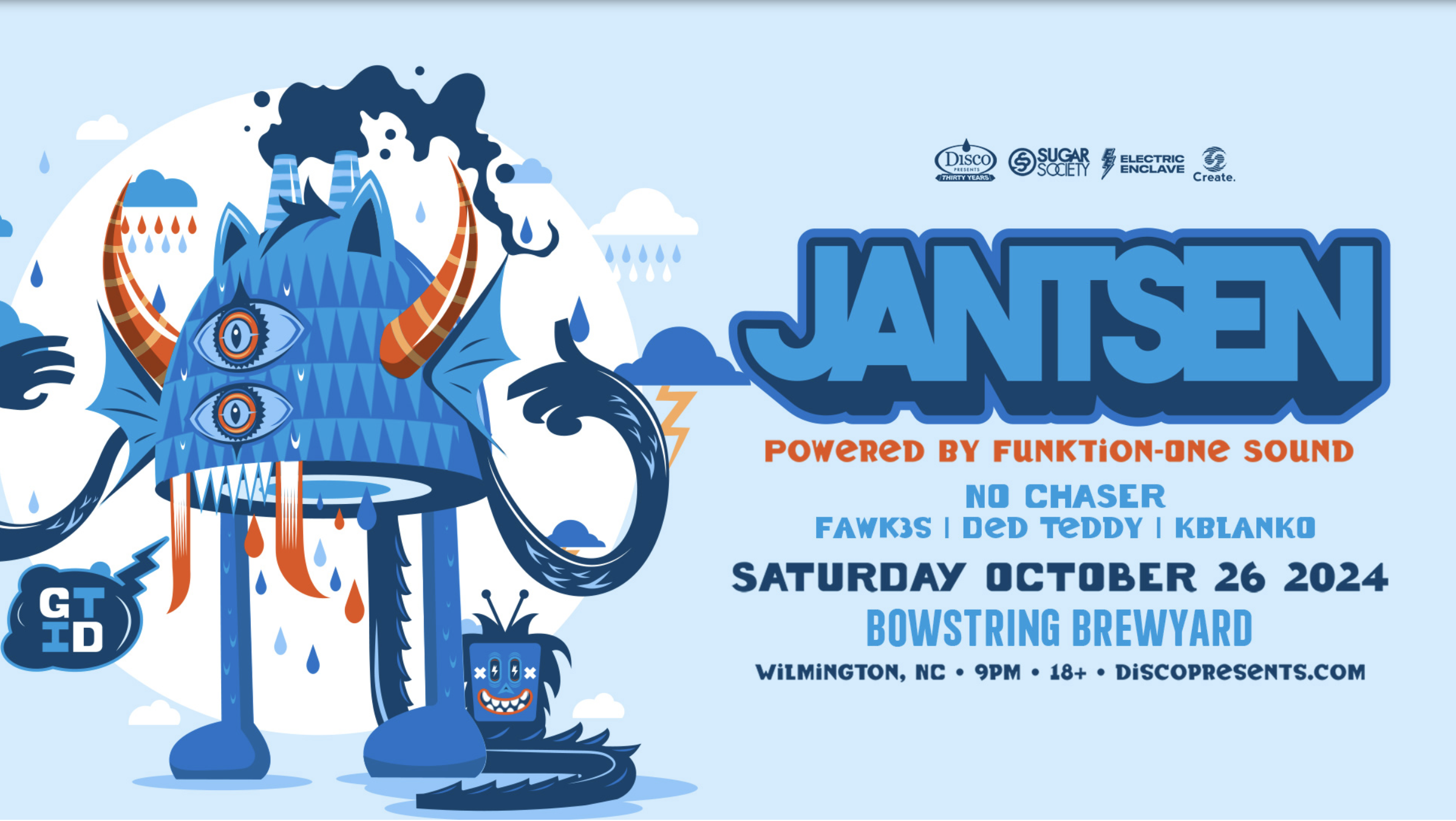 Get ready for an unforgettable night as Jantsen brings his electrifying beats to Bowstring in Wilmington, NC, on October 26th. This highly anticipated event promises to be a thrilling experience, with NO CHASER, Fawk3s, Ded Teddy, and KblanKO . The show kicks off at 9 PM and keeps the energy pumping until 2:00 AM, ensuring a night filled with non-stop dancing and unforgettable memories.