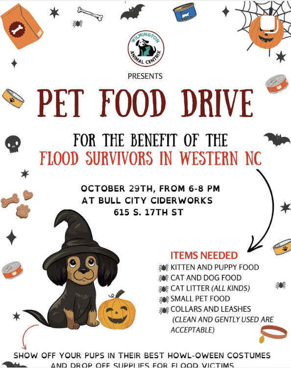 oin us for a *Howl-o-ween Dog Costume Contest*—where your pup can strut their stuff for a good cause! 👻🐶 @wilmingtonanimalcentrix is hosting the fun event on Tuesday that also serves as a *Pet Food Drive* to support flood survivors and their pets in Western North Carolina.