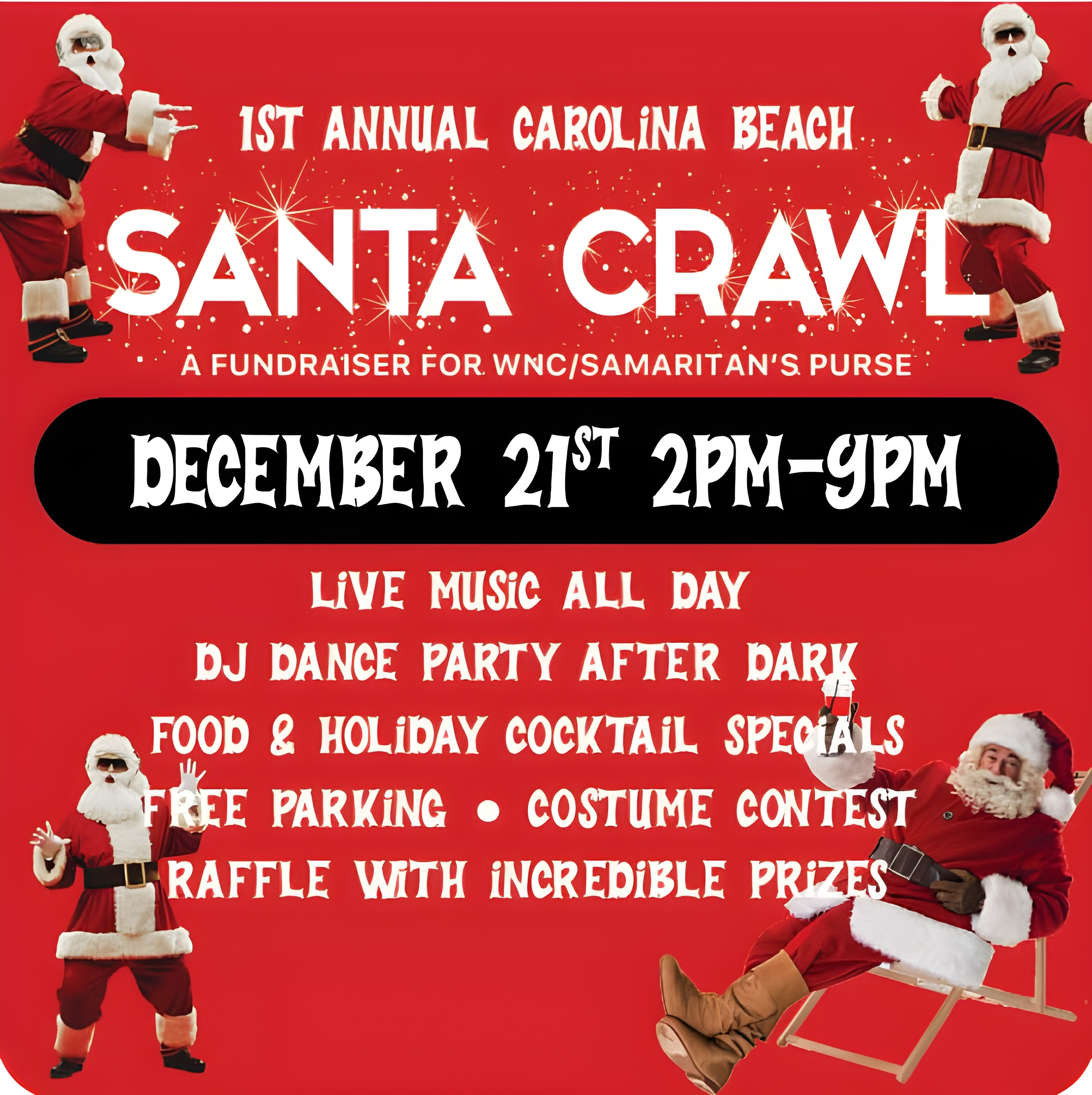 Live music all day, DJ dance party after dark, food and holiday cocktail specials, free parking, costume contest, raffle!