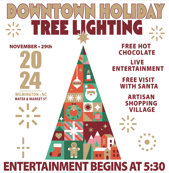 Join Wilmington’s Annual Downtown Holiday Tree Lighting on Nov. 29, 2024, at Market & Water St. by the Cape Fear River! 🎄✨