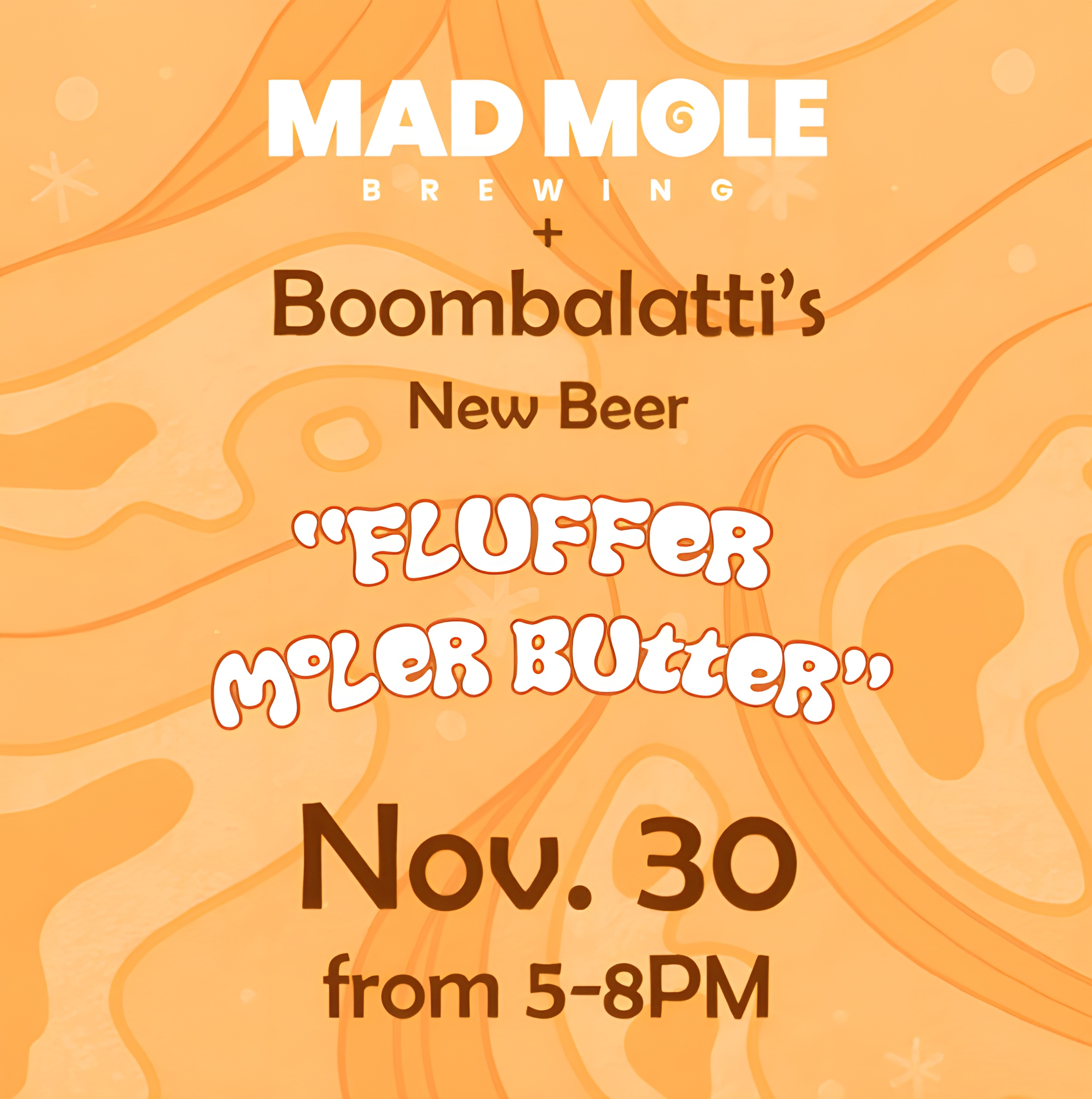 Fluffer Moler Butter: Release Party November 30 @ 5:00 pm - 8:00 pm Beer Release Party: Fluffer Moler Butter Pastry Stout w/ Peanut Butter, Vanilla Ice Cream, Marshmellow and Lactose. We got to brew a crazy delicious beer with the crew from Boombalattiโs and are so excited for you to try it! we are having a party to celebrate the release of this beer! Live Music- Christian Brinkley 5-8 Food Truck- Rude Bwoys 5-8