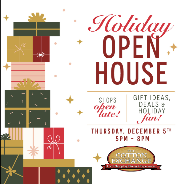 π Our merchants are ready with gift ideas, specials, deals and holiday cheer! We'll have live music and THE GRINCH! Come see us and experience the Cotton Exchange at night!