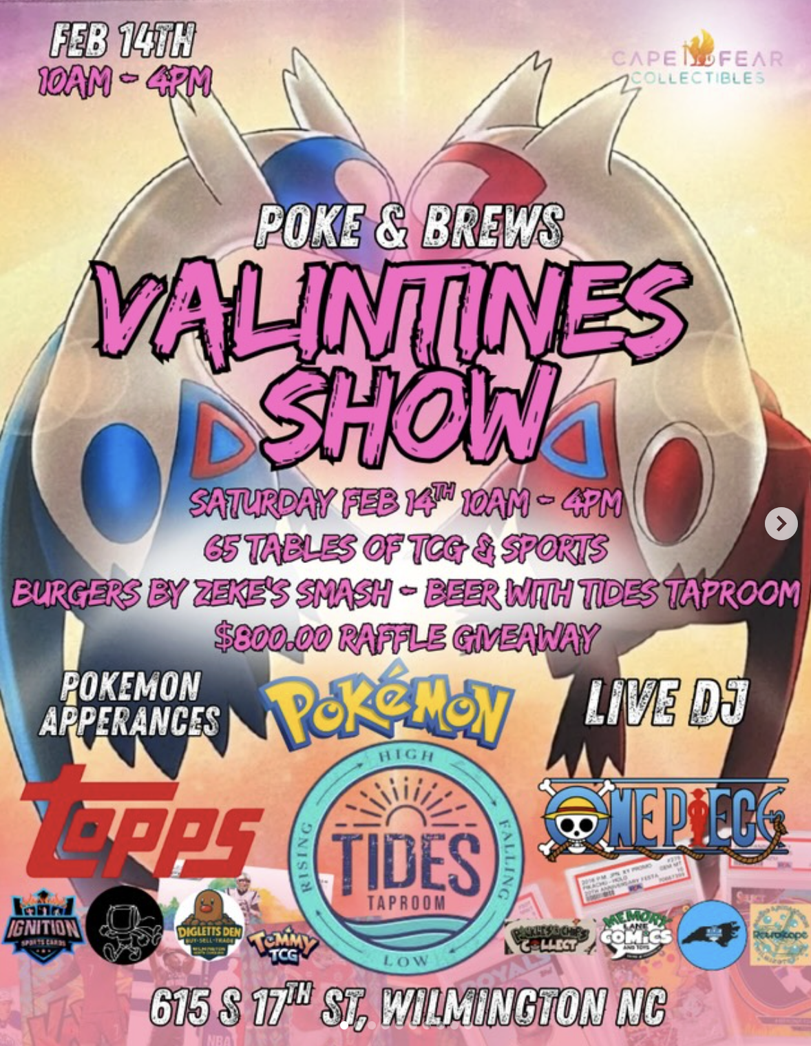 Valentine’s Day is for lovers…. Lovers of Pokemon that is 🤣. POKE & BREWS is bringing you a special event with a live DJ, Character Meets, Burgers 🍔 and Beer 🍻 with fun for the whole family. FEB 14th at @tides_taproom 10am - 4pm with over 60 tables of Sports & TCG.