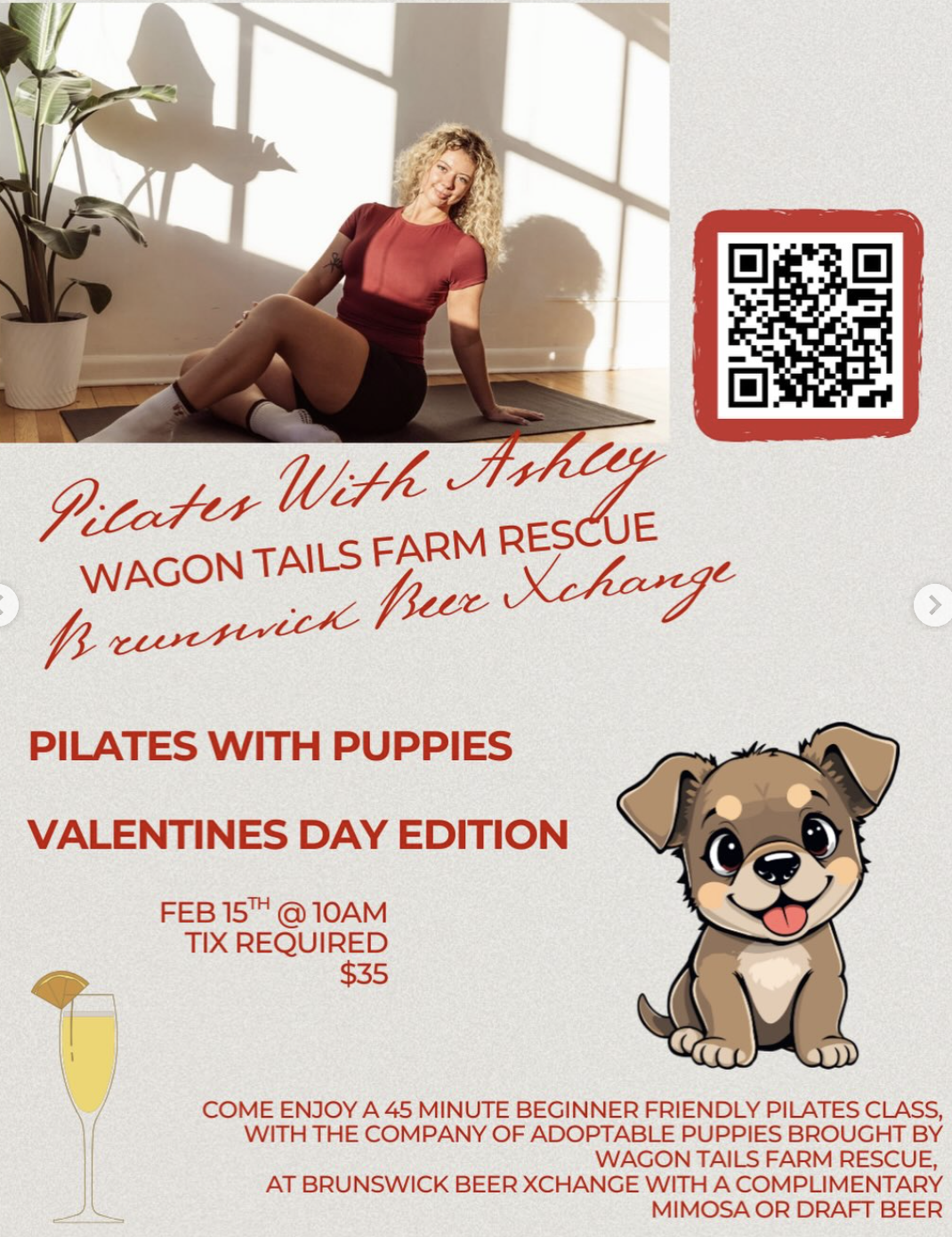 Roll out your mat for a paw-some morning of one hour of guided Pilates paired with adorable rescue puppies!