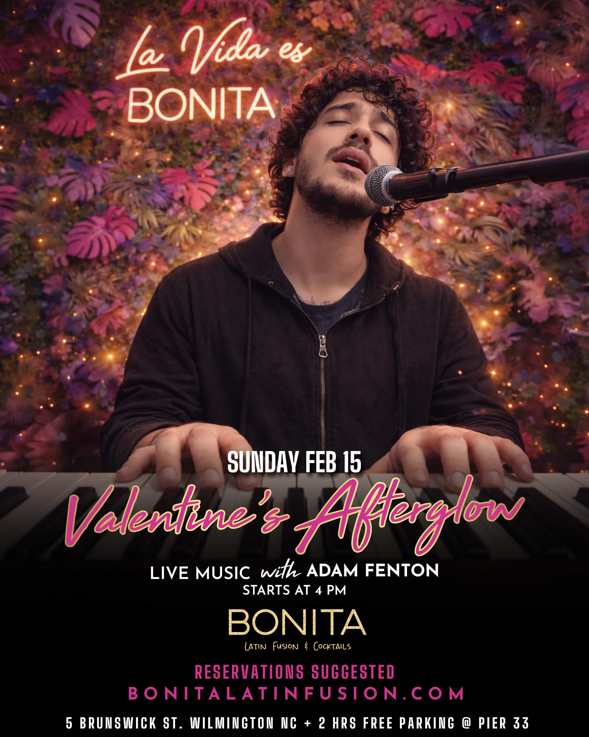 Because love deserves more than just one day.💘 Join us at Bonita this Sunday, Feb 15, for Valentine’s Afterglow, and enjoy live music by Adam Fenton @fenty910 🎶 starting at 4 PM 💘