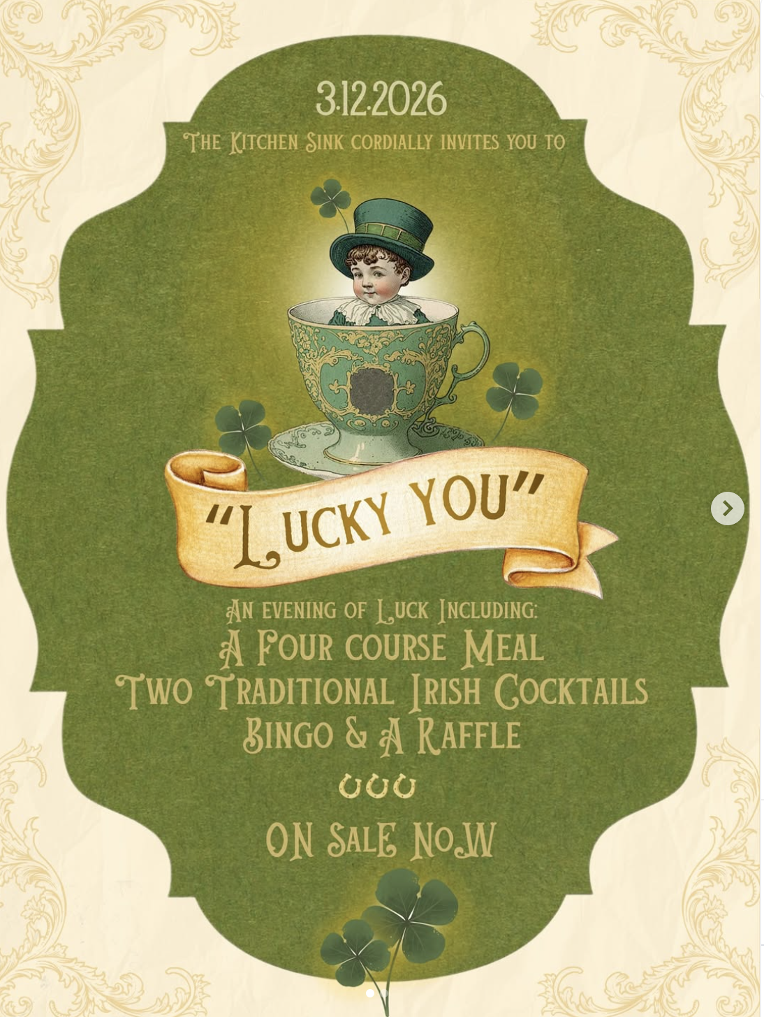JOIN US 🍀 Thursday, March 12th for our “Lucky You” St. Patty’s Day event!!! We will have an Irish buffet, cocktails, bingo and prizes to fill your evening. Plus, swipe to see you’re part of the lucky few who qualify for a discounted rate. (thekitchensinkilm@gmail.com)