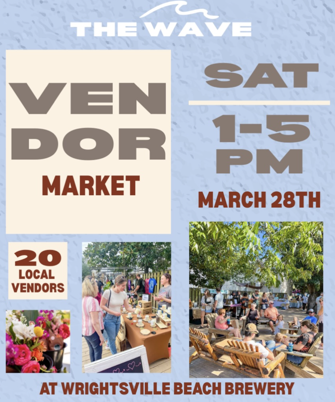 Join us on Saturday, March 28th for The Wave Market at the beautiful Beer Garden at Wrightsville Beach Brewery!