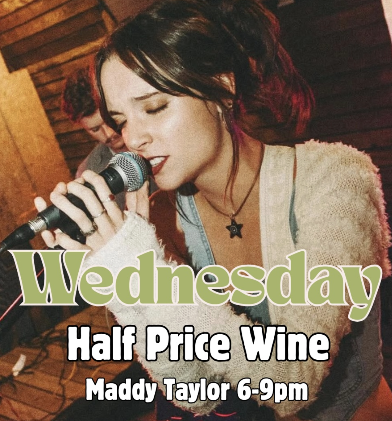 Enjoy a half priced glass of wine while watching Maddy Taylor perform live at The Bend
