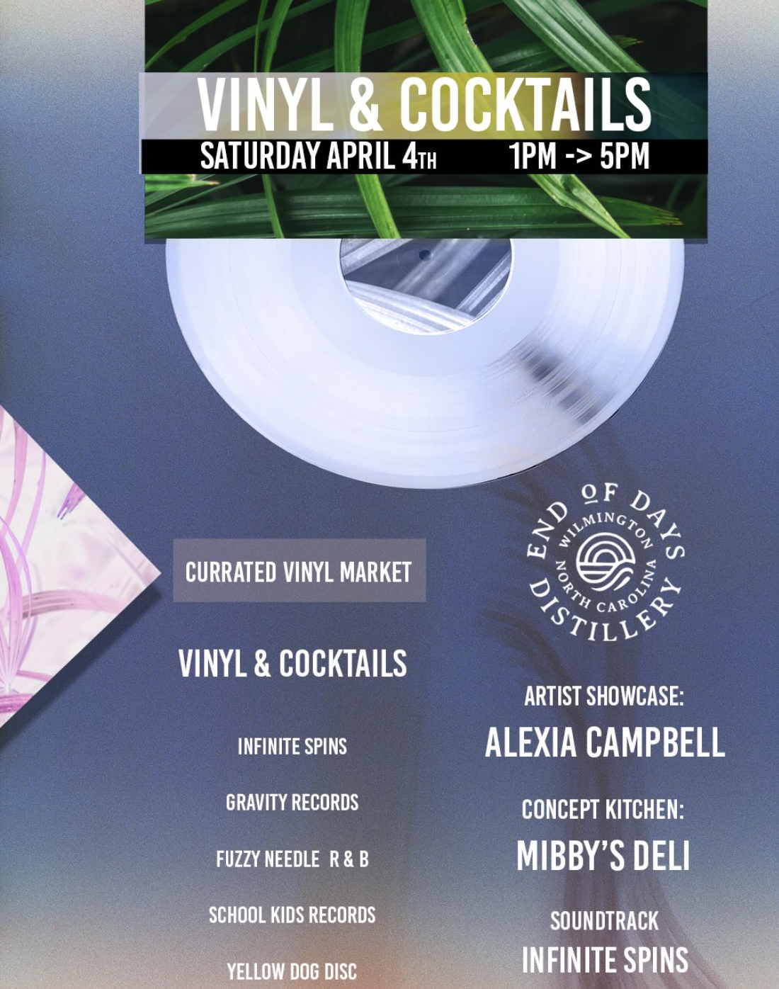 🌞Vinyl & Cocktails returns April 4th 2026 from 1-5PM @eoddistillery featuring the best vinyl Wilmington has to offer.