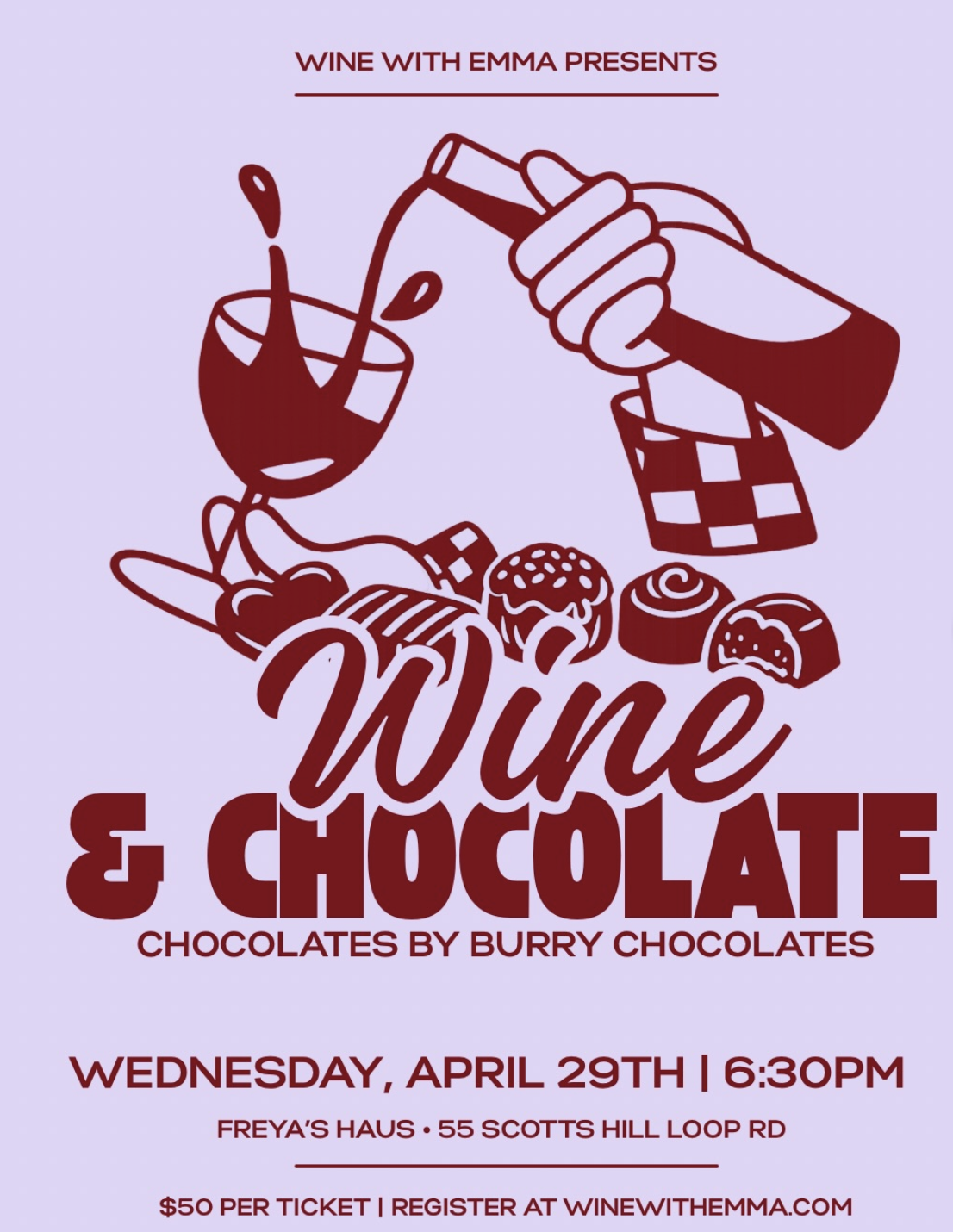 Join me for a guided tasting with 3 wines and 3 artisan chocolates from Burry Chocolates. It’ll be fun, approachable, and full of pairings that might surprise you in the best way.