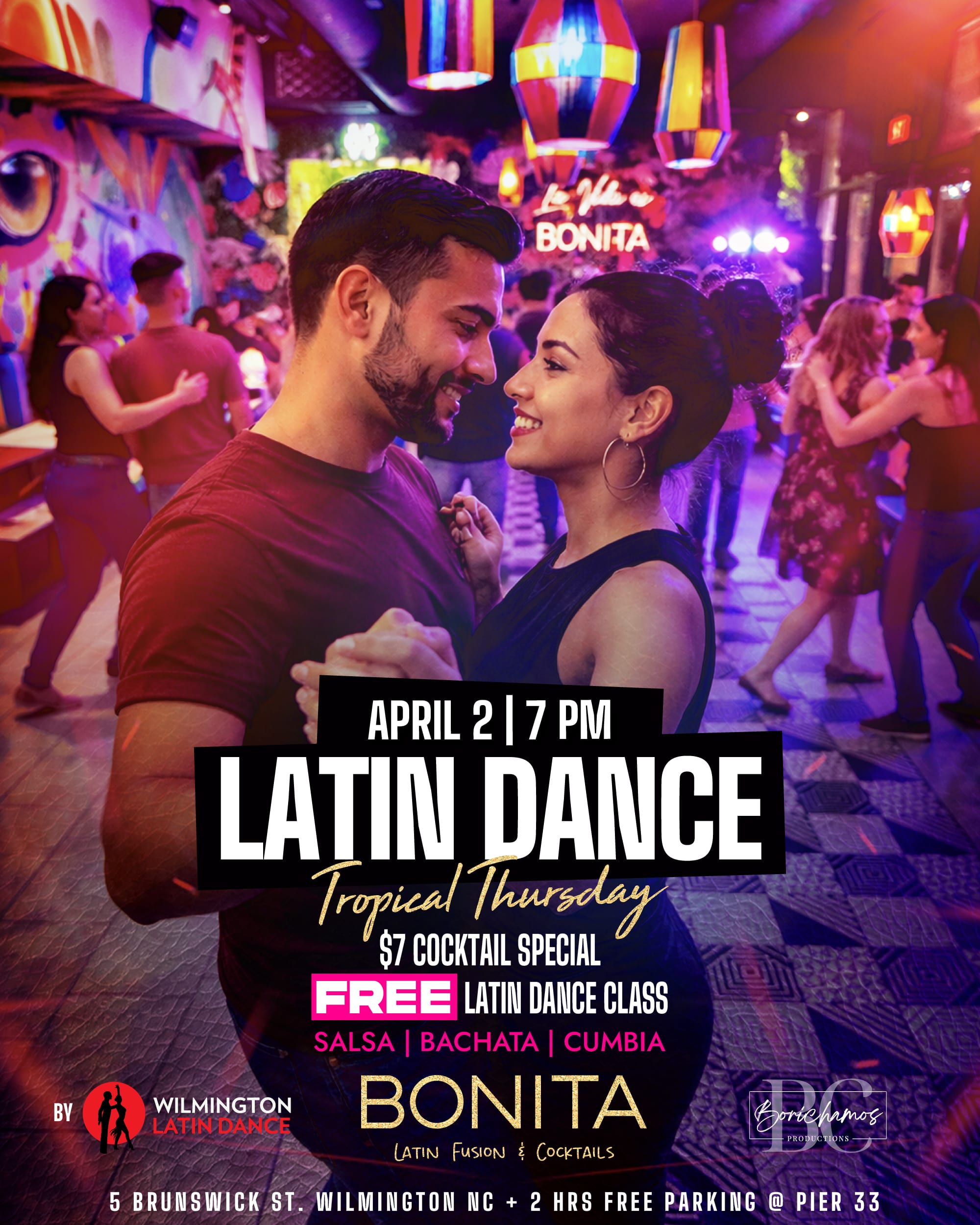If youโre not at Bonita this Thursdayโฆ youโre missing out! ๐๐๐ Join us this April 2 for a Latin dance class at 7 PM with @wilmington.latindance + @borichamos_productions bringing the beats all night! ๐ถ๐โจ No partner needed, just bring your energy! ๐น ๐5 Brunswick St., Wilmington, NC 28401 @pier33apartments.