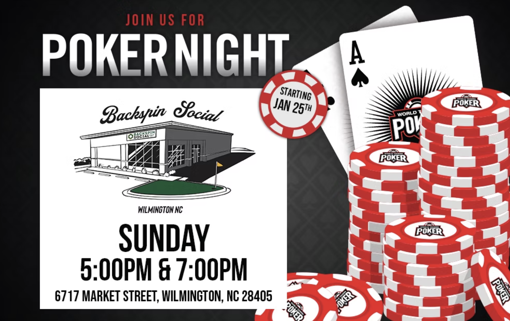FREE POKER every Sunday at 5pm and 7pm.