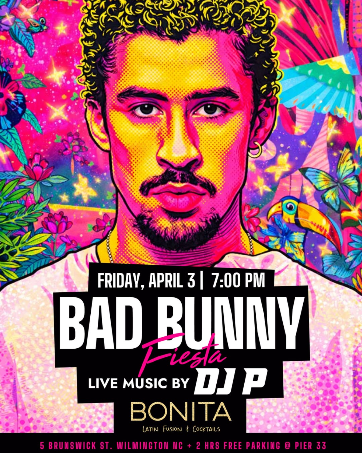 Get ready to bailar toda la noche! ๐ Join us at Bonita this Friday, April 3 at 7 PM for the ultimate Bad Bunny Fiesta! ๐ฐ๐ด๐ถ๐ Reggaeton, sabor, y buena vibra all night long w/ @jmperdomo23 spinning all your favorite Bad Bunny hits ๐ถ