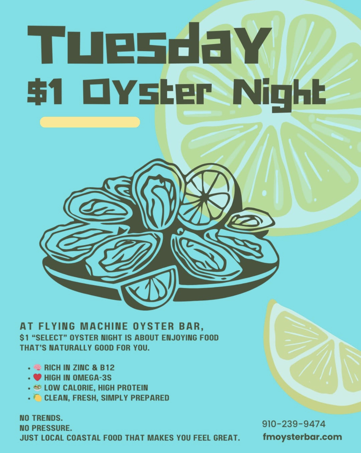 At Flying Machine Oyster Bar, $1 SELECT Oyster Night celebrates food that’s naturally good for you.