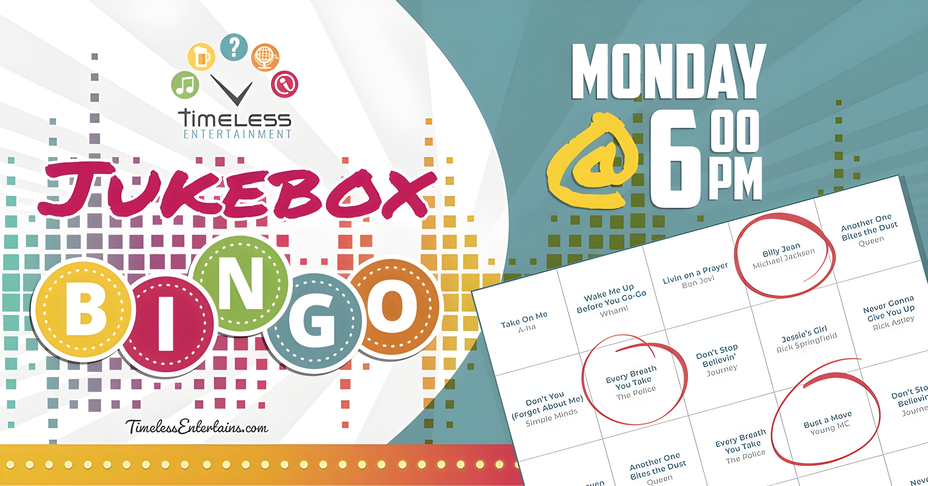 Join us every Monday from 6-8 for Jukebox Bingo!